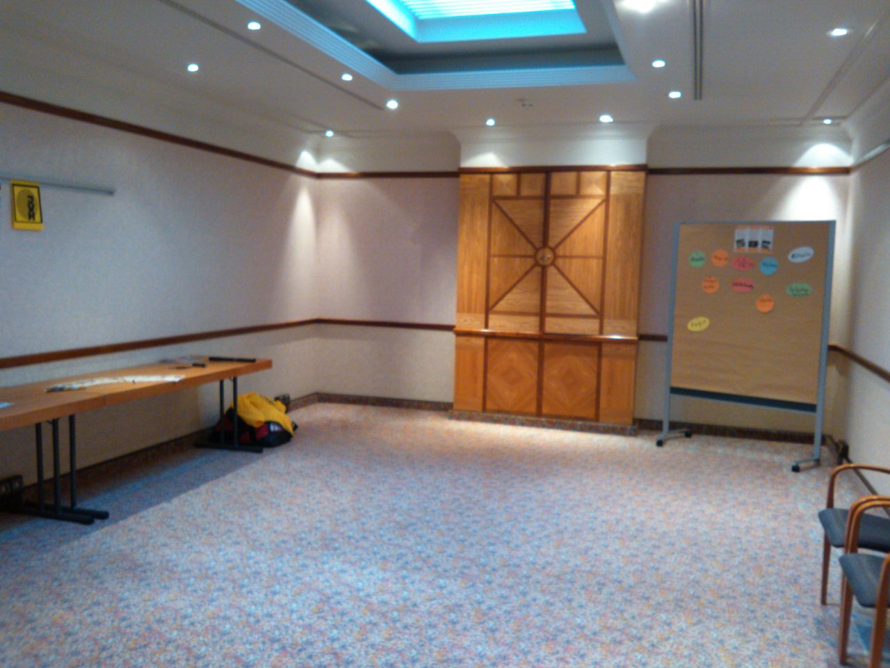 Anfangs herrschte erst einmal gähnende Leere und so hatten wir Zeit zur Kontaktaufnahme mit den benachbarten Veranstaltungspartnern. Zwei junge Fotografen besiedelten das Zimmer neben uns. Eine Fitnesstrainerin, die Faszienentspannung anbot, hatte es reichlich schwer. Die Teilnehmerinnen hatten einfach keine Lust sich in den Boden zu begeben. Sehr schade, denn das Angebot war super!
