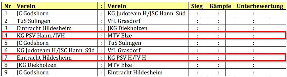 Um 14:00 Uhr ist Wiegebeginn, gegen 14:45 Uhr starten die Kämpfe. Unser Begegnungen sind folgende: