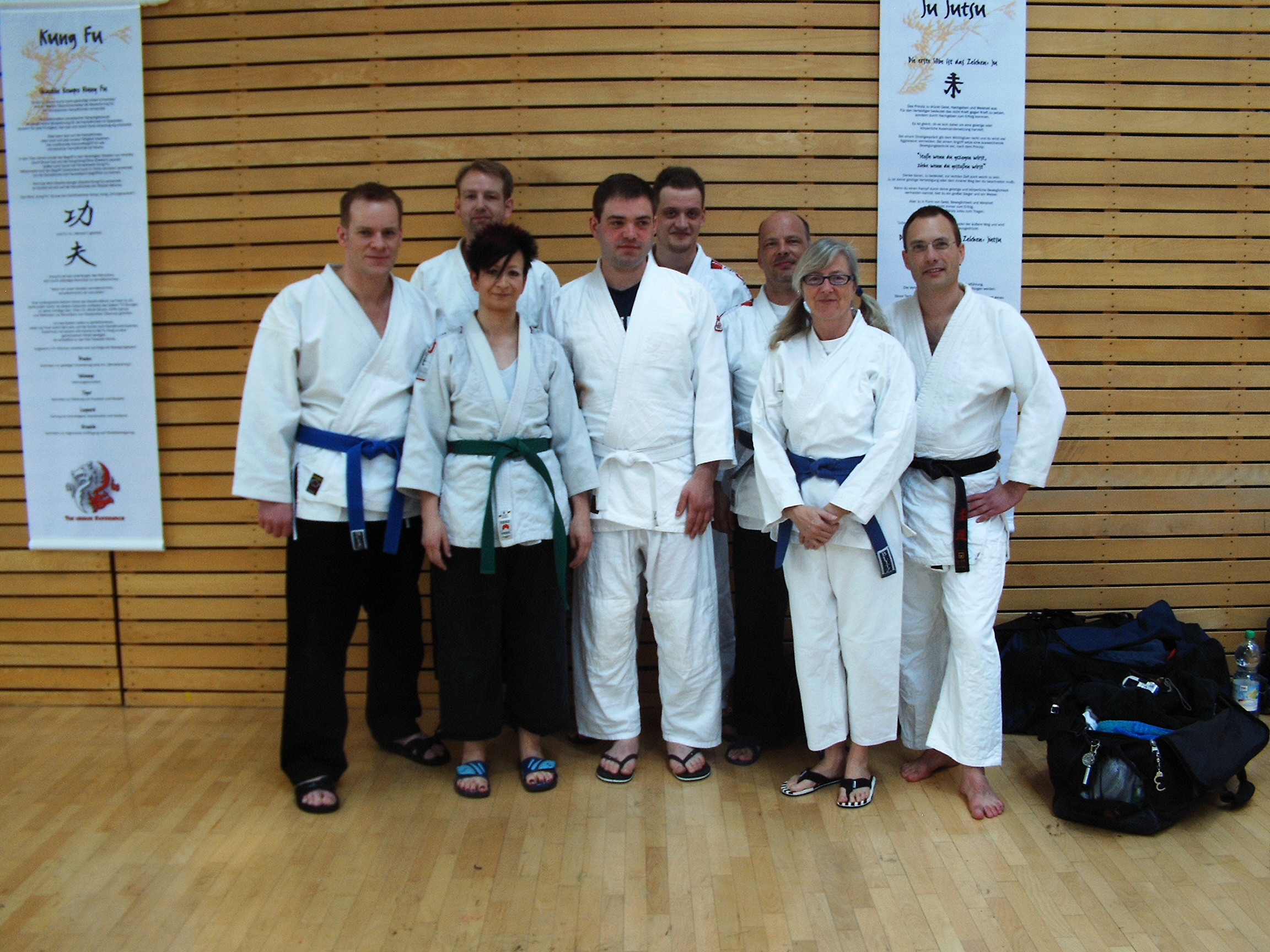 Das diesjährige Training war sehr vielfältig. Bei Alain erwartete uns eine Lektion in Stocktechniken, die wir beim schönsten Sonnenschein draußen absolvieren durften. Nur das Zu-Boden-bringen draußen war nicht jedermanns Sache, da die Anzüge danach einige Schmutzspuren aufwiesen.