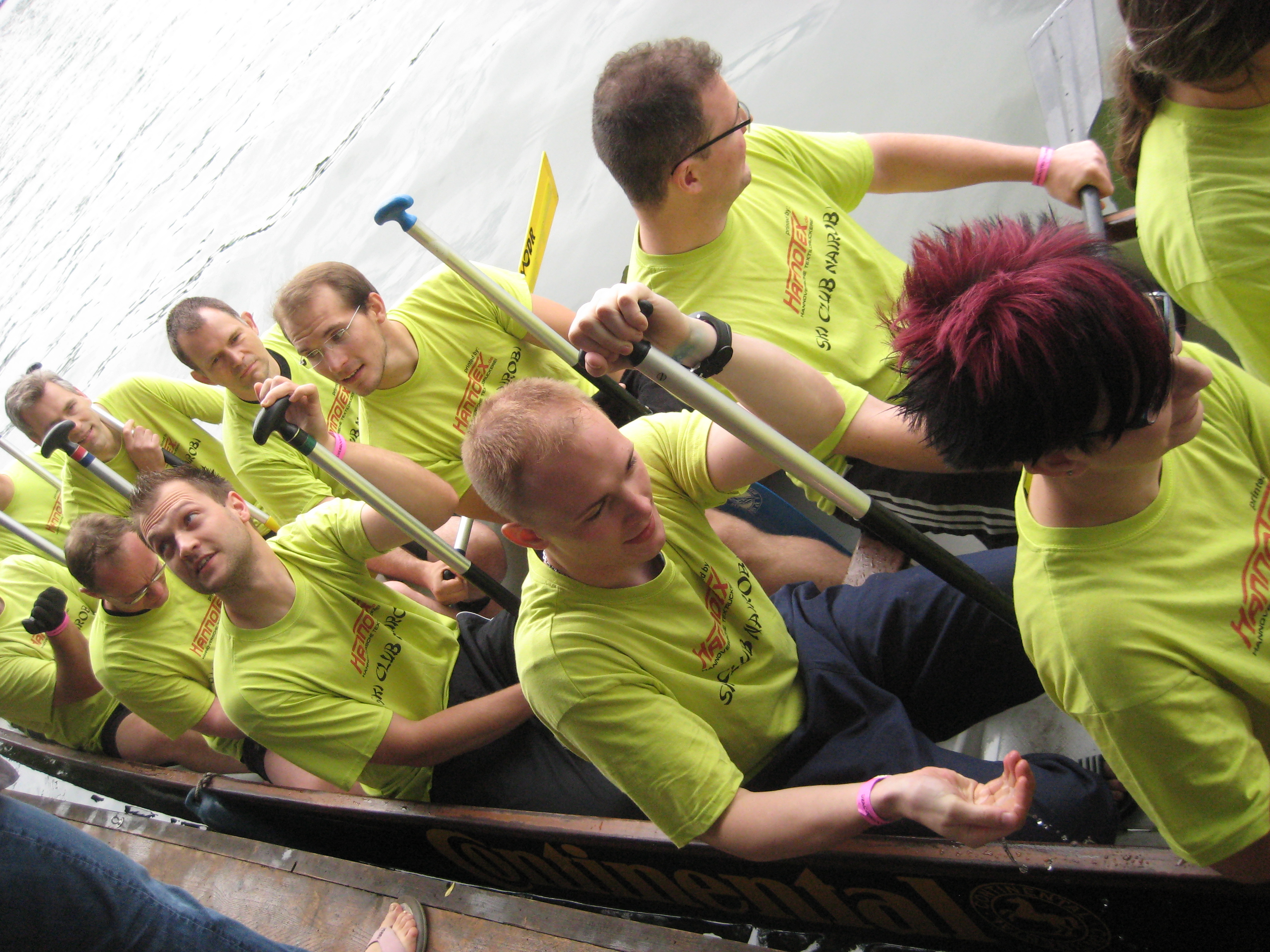 Nachdem nun das offizielle Teil hinter uns liegt erst mal ein großes Danke an Sklaventreiber Sharam und den anderen Organisatoren unserer Teilnahme am Drachenbootrennen. Und auch wenn Eigenlob angeblich stinkt: wir waren ein klasse Team mit viel Spaß. Natürlich wollten wir gewinnen, wer hätte das nicht gewollt?, aber neben dem sportlichem Ehrgeiz stand der gemeinsame Spaß und das Miteinander im Mittelpunkt des Rennens und in diesem Punkt waren wir ganz sicher ganz vorne. Keine Diskussionen über nicht erreichte erste Plätze (man wundert sich was für einen Ehrgeiz und Energie manche Leute in der FunFun-Gruppe an den Tag legen und sich dann halbe Ewigkeiten über den verpassten Sieg aufregen können, nicht erster wird man, welch Überraschung, immer nur wegen der anderen).