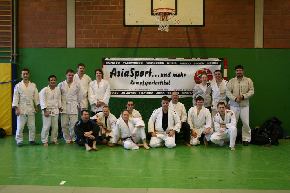 Unterstützt durch die hannoveraner Unternehmen Pro Fight (www.profight.de) und Asia Sport (www.asia-sport.de) kämpften die Teilnehmer nach abgeänderten Regeln des Brazlian Jiu-Jitsu vom Boden startend um tolle Sachpreise, u.a. Wertgutscheine, Mundschutz und einen Gi. In ambitionierter aber stets sportlich fairer Atmosphäre gewann in der Klasse bis 70kg Andreas Meyer vor Timo Gutjahr. Bis 85kg ging kein Weg an Andreas Tolle vorbei, der in einem spannenden Kampf um den Platz auf dem obersten Treppchen Torsten Sauer nach Verlängerung besiegen konnte. Bei den vermeintlichen Schwergewichten setzte sich Benjamin Schuster im Finalkampf gegen Christian Saat durch. Die sehr üppig besetzte Open Klasse ohne Gewichtslimit wurde wiederum von Andreas Tolle dominiert, der sich im Finalkampf gegen Benjamin Schuster durchsetzen konnte.